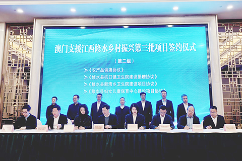 簽約儀式於上月三十日在修水縣舉行,澳門特別行政區政府政策研究和區域發展局局長張作文,中央人民政府駐澳門特別行政區聯絡辦公室經濟金融部副部長楊全州,江西省蘇區辦副主任傅小鵬,江西省港澳辦副主任陳俊,九江市政府副市長杜少華,修水縣委書記鄭慶華,修水縣委副書記、縣長劉婕等出席。簽約儀式後,澳門代表團前往黃庭堅紀念館、寧紅茶創新產業園等地點參觀考察。◇
