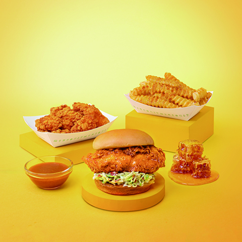 甜辣蜜糖脆雞堡以香脆雞肉澆上由澳洲蜂蜜、牛油及黑椒調製而成的甜辣蜜糖醬,配搭清新椰菜絲和爽甜青蘋果,交織出酸、甜、辣等層次豐富的滋味。