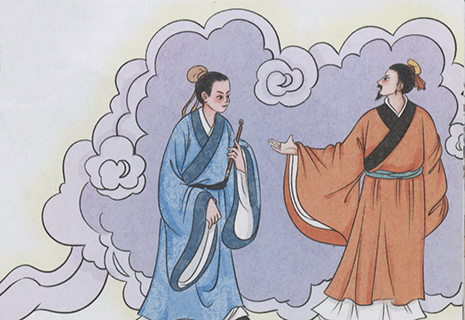 男子自稱郭璞,對江淹說:「我有一支筆放在你這兒很多年了,現在請把它還給我吧。」江淹從懷裏摸出一支五色筆遞給了他。