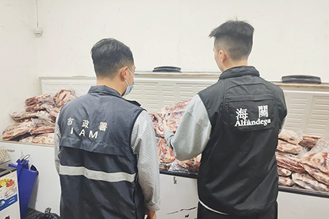 本澳海關表示,今個月十六日,海關人員巡查期間於關閘一帶發現一個懷疑「水客」活動散貨點,即時對有關單位採取行動,查獲約六百公斤急凍牛肉,貨物市值約六萬澳門元,一人涉嫌違法被查。