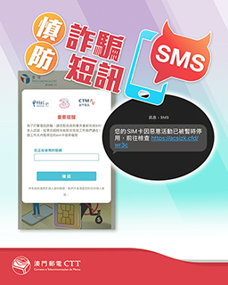 郵電局接獲市民反映收到冒充局方發出的短訊,以打擊電信詐騙、重新完成SIM卡認證為由,誘導市民連結至假冒的郵電局網站,藉此騙取個人資訊。