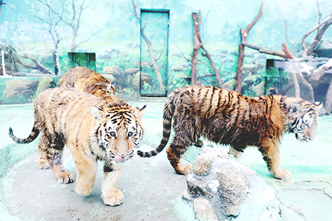 ◎ 一月二十日,正值大寒節氣,位於陝西西安的秦嶺野生動物園裡白雪皚皚。大熊貓、老虎等動物來到室外,在雪地裡玩耍、進食。圖為小老虎在室外玩耍。(中新社發秦嶺野生動物園供圖)