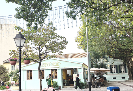 在巴波沙總督街的冰室外面,原來已撐起陽傘、擺了幾枱茶座,遊客坐在這兒,享受悠閒時光!