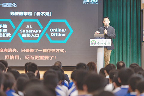 在互動交流環節,學生們踴躍提問,圍繞個人發展及如何參與本地金融科技創新、提升信用與科技素養的實際途徑、數位支付普及下的長者關懷,以及個人資料安全等議題。主講嘉賓回應指出,澳門正逐步推動產學合作與金融素養教育,鼓勵青年主動接觸真實場景;並勉勵同學們保持對新技術的敏銳觸覺與持續學習的熱情,在快速變遷的金融科技環境中,應兼具技術能力與社會價值創造力。