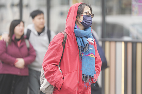 ◎ 一月廿三日,早上天氣寒冷,市民穿著厚厚的冬衣出行。冬季季候風正為華南帶來寒冷的天氣。香港今日天氣大致多雲,日間部份時間天色明朗及乾燥,最高氣溫約攝氏十七度。展望明早仍然相當清涼,日間部份時間有陽光,氣溫回升,隨後兩三日大致多雲,星期日風勢較大。(香港中通社記者 陳奕啟 攝)