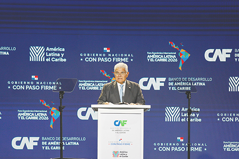 拉丁美洲和加勒比國際經濟論壇開幕 多國元首呼籲區域團結 2026-01-30 03:30:00 ◎ 二0二六年拉丁美洲和加勒比國際經濟論壇一月二十八日在巴拿馬城開幕,多國元首呼籲加強區域團結,共同應對威脅與挑戰。圖為當日,在巴拿馬首都巴拿馬城,巴拿馬總統穆利諾在二0二六年拉丁美洲和加勒比國際經濟論壇上致辭。(新華社發 丹尼爾.岡薩雷斯 攝)
