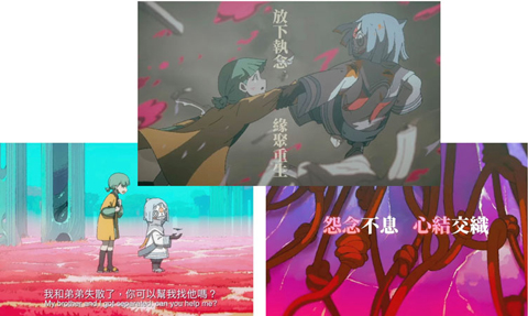 有時候,協助人解結者,自己也可能有未能完全明和或察覺的心結。《世外》有一個規條,就是被忿恨支配了,人便會變成怪物催毀世界,所以必須把變成怪人的人剷除。故事裡,靈守小鬼不明白人類的七情六慾,也對自己為何不會哭和不會展現人類的情感而產生問號。他偶然遇上了堅持尋找弟弟的小妹,決定協助她找尋弟弟,再送她去投胎轉世。可是卻遍尋不獲,於是求助天女,天女賜小鬼可以回看過去的能力,結果發現真相是小妹一家因為饑荒,結果把病死的弟弟吃了,才得以生存下去。這份對自己的恨,使小妹無法原諒自己,差點成份惡鬼的同時,也促使小鬼與小妹約定,守護她千年的不同轉世,協助她放下執念。所以出現了見證花城滅亡的古蘭公主、被官兵迫到絕境的姜山,他們最後都放下執念,小鬼替其拔去鬼之芽。最後,來到現代,小妹的弟弟原來轉生在同一個地方,可是小妹卻因為眼見自己重視的人死了,化為惡鬼,慶幸是,這一世在她臨終前與弟弟相認了,她真的放下千年來的執念,小鬼卻因生命能量快將耗盡,奄奄一息,天女表示小鬼只可以轉世為人,才可以活下去,到這裡,大家可能想到,小鬼的心結,不就是他一直不明白人的情感嗎?只有成為人,才有可能明白人呢。
