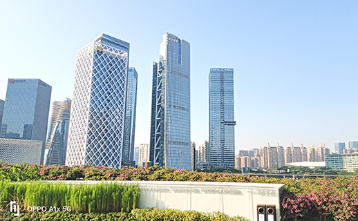 灣區之眼的大部分空間處於地面之下,地上僅五層,建築高度也只有十二米。樓頂有二萬平方米的空中花園。在樓頂的邊沿,多是栽種成叢成簇之花,如三角梅等。其餘部分,則是草坪。據深圳出版集團的負責人介紹,此空中花園,多被用來開發佈會、酒會、篝火晚會等。尤其是在夏天的時候,涼風習習,星空璀璨,周邊高樓燈火通明,置身此空曠之半空,心曠神怡,爽快愜意,無比的舒暢。