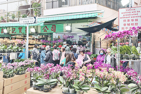 【香港中通社二月七日電】(香港中通社記者梁嘉軒)丙午馬年和情人節將至,不少香港市民七日到擁有百年歷史的旺角花墟買花。有市民預計今年將在買花上花費千元(港元,下同)。部份店舖人頭攢動,擠滿了選購和結賬的市民;惟部份店家坐在街上叫賣,並對記者表示對今年生意不太滿意。