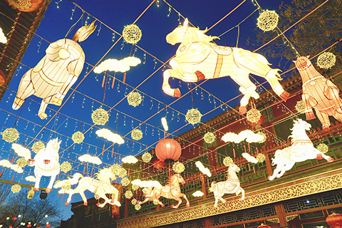 ◎ 二月八日,馬年新春裝飾亮燈。臨近春節,北京琉璃廠古文化街年味漸濃。(中新社記者 陳芳婷 攝)