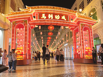 馬年春節將至,為營造濃厚的節日氣氛,市政署以「駿馬迎春賀新歲」為主題,在全澳各區多條主要街道、廣場、公園、綠化帶及圓形地等地佈置了賀年燈飾,呈現歡樂祥和的新春氣氛。