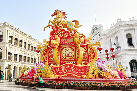 當中於議事亭前地除佈置大型馬年燈飾外,還有板樟堂的牌樓式燈飾,市政署大堂的年花燈飾及大三巴的馬造型燈飾,吸引不少遊人打卡。◇
