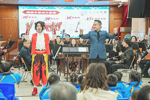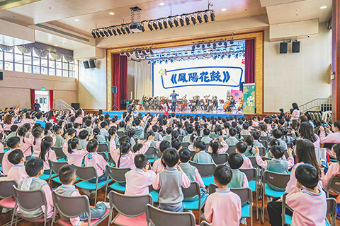 演出以哪吒三太子與哮天犬的故事為主軸,巧妙融合中樂「吹、彈、拉、打」四個聲部的音樂知識,並在駐團指揮廖元鈺的帶領下,呈獻《Golden》《多啦A夢》等耳熟能詳的兒歌,以及《鳳陽花鼓》《步步高》《賽馬》等富有中樂傳統特色的樂曲。小朋友在互動環節中試玩樂器,親身感受中國傳統樂器的趣味,現場氣氛歡快熱鬧,深受師生喜愛。此外,樂團向每位小朋友贈送中國樂器填色紙,鼓勵幼童發揮創意,並藉此進一步加強對中樂的認識與興趣。