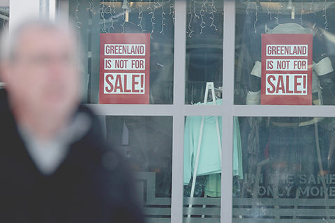 ◎ 大部份位於北極圈內的格陵蘭島生活節奏緩慢,社會秩序穩定。過去一年,美國總統特朗普反覆揚言要得到格陵蘭島。對當地人而言,美國「奪島」已不再是隱晦的地緣政治討論,而是逐漸滲入日常生活的現實話題。有人開始在家中準備應急食品和常用藥品;格陵蘭島自治政府也罕見地提醒居民,留意可能出現的斷電、斷網情況;電視和社交媒體上,與美國有關的消息反覆滾動;一些商鋪則在門口掛起「格陵蘭島不出售」的標語。圖為二月八日,在丹麥自治領地格陵蘭島首府努克,一家商鋪櫥窗上貼著「格陵蘭島不出售」標語。(新華社記者 李穎 攝)