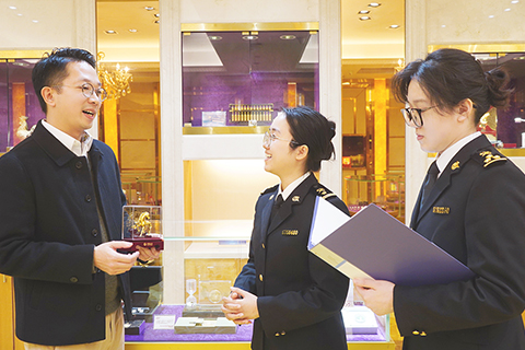 隨著新年消費市場持續升溫,盛豐珠寶接連收到來自澳門的多個金飾大訂單,貨值超過六千萬元港幣。針對黃金商品體積小、價格高等特點,海關主動靠前服務,持續優化查驗流程、強化智慧監管應用,貨物查驗時間由原來的三小時壓縮至一小時內。拱北海關所屬青茂海關綜合業務科科長邱省峰介紹,「為保障春節期間企業貨物通關高效順暢,我們進一步深入摸排企業堵點難點,安排專人與企業『一對一』溝通指導,確保貨物即到即報、快速驗放。」