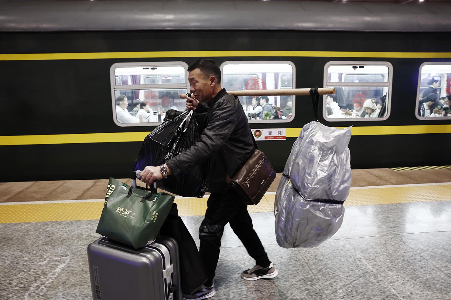 綠皮車「列車春晚」 安徽自貿試驗區推出廿項舉措 全鏈條支持生物醫藥創新港澳台醫生可赴皖短期執業 無人機拍攝到沙洲育幼清晰影相 斑海豹陸域繁衍首現遼東灣 同步點亮夜空第四十年 廈金共燃焰火賀新春 不堪長期照顧而弒子 台八旬婦獲「免刑不免罪」 去年中國結婚登記六百七十六萬三千對 比前年增六十五萬七千對 湘北小鎮用浮標「釣」起全球市場 綠皮車「列車春晚」 2026-02-13 03:30:00 ◎ 二月十一日十七時廿六分,K1127/6次旅客列車從鐵路上海站駛出,前往襄陽站。近二十小時的歸家旅途中,二百三十六名長三角地區務工的湖北籍旅客,在車廂內上演了自編自導的「列車春晚」。圖為二月十一日晚,旅客帶著行李在杭州南站準備上車。(中新社記者 殷立勤 攝)