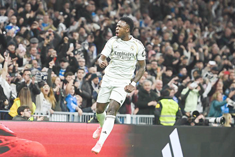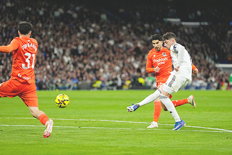 【新華社馬德里2月14日電】(謝宇智)在西班牙足球甲級聯賽14日的比賽中,皇家馬德里主場4:1大勝皇家蘇斯達,在積分榜上暫時超越巴塞,排名榜首。