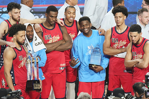 【特訊】美國NBA全明星賽,昨早美國星隊47:21,戰勝美國條紋隊奪冠。今年全明星賽進行賽制改革,分3支隊伍,分別是美國條紋隊、美國星隊和世界隊。3隊打兩輪賽制,第一輪是單循環賽,3支球隊交互對戰,戰績最好的2隊進入第2輪爭奪冠軍。美國條紋隊首輪連勝美國星隊及世界隊。另一場交量,星隊經過加時力克世界隊,兩支美國隊會師決賽。星隊一開賽就打出一波7:0的攻勢,取得領先優勢,最終大勝26分完場。木狼後衛愛華士在3場比賽,合共取得32分,榮膺全明星賽MVP。