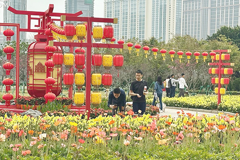 【專訪】在氹仔龍環葡韻舉行的新春主題花展,昨日年初六(二十二日)最後一天展出,不少市民和旅客把握時間到場賞花。