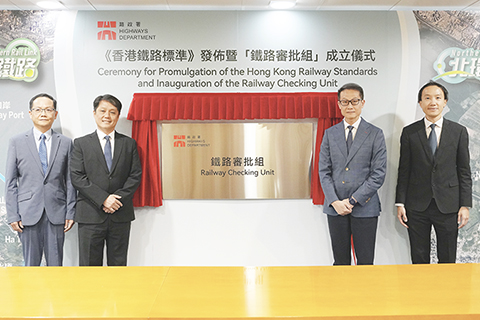 春節黃金周首八日錄得一百卅五萬內地旅客人次訪港 日均近17萬人次業界表滿意 「鐵路審批組」成立揭牌 港股單日漲六六八點 重越二萬七千關 數據顯示香港商鋪及寫字樓租務復甦 多家投行調高港樓價預測 香港「35+顛覆案」12被告上訴遭駁回 港府研究是否就一無罪裁決提上訴 特府收購大埔火災宏福苑樓宇 其中40億元公帑納入預算案 香港懲教署長黃國興答黎智英在囚稱 「法律不存在保外就醫」 香港民青局新春團拜 李家超祝國家民富業茂 香港消委會去年接獲投訴 逾三萬八千宗按年減6% 就加入RCEP協定 香港冀年內展開實質性談判 「鐵路審批組」成立揭牌 2026-02-24 03:30:00 ◎ 二月廿三日,香港特區政府路政署公佈《香港鐵路標準》,同時宣佈正式成立鐵路審批組,以加快新鐵路項目的推展進程。圖為「鐵路審批組」成立進行揭牌儀式。(香港中通社圖片)