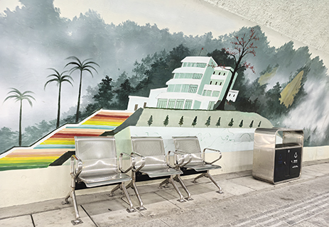 我們由新街坊那裏進入,很快見到有座椅,一排三張,旁邊還有垃圾桶,這設置够貼心!左邊是人行道,右邊是行車道。