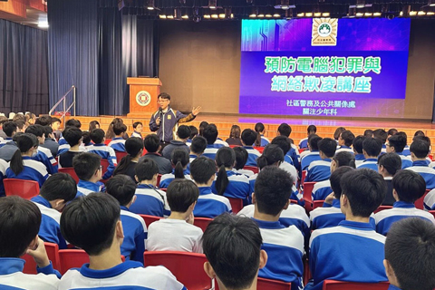 【專訪】司警為深化警校合作,築牢校園安全防線,司警局關注少年科人員持續開展面向學生的防罪教育活動,於早前分別到澳門國際學校及培正中學,舉辦三場「預防電腦犯罪與網絡欺凌」專題講座,逾八百五十名學生參與。