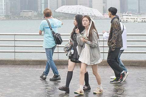 ◎ 三月三日,香港天文台表示,由於今年二月大部份時間影響華南的東北季候風較正常弱,令香港天氣異常溫暖。香港由去年十二月至今年二月經歷了有記錄以來的最暖冬季,平均氣溫達十九點三攝氏度,較正常值高攝氏兩度。圖為民眾近日在香港尖沙咀出行。(中新社記者 陳永諾 攝)