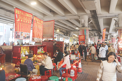 ◎ 三月四日,(驚蟄),香港銅鑼灣鵝頸橋下傳統「打小人」活動迎來人流高峰。驚蟄日春雷始鳴,古人以艾草熏屋驅趕蛇蟲鼠蟻,後演變為象徵性拍打「小人」的習俗。現場多名「小人婆」手持舊鞋擊打紙質小人,輔以香燭、符紙完成儀式,市民排隊等候參與,祈願新一年遠離是非災厄。(香港中通社記者 鄧梓傑 攝)