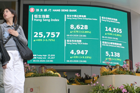 恆生科技指數報4947點,升151點或3.2%。恆生中國企業指數升176點或2.1%,報8628點。大市成交額2927.66億港元。港股縱然6日造好,仍難改全周跌勢:恆指本周累跌873點或3.3%、國指本周累跌231點或2.6%、科指本周累跌190點或3.7%。