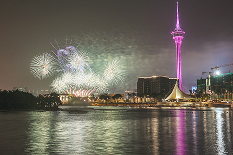 ◎ 第三場「金駿雲翔 歡樂春節」二零二六無人機煙花匯演昨晚點亮澳門夜空。