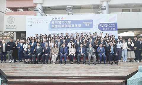 就業展開幕式昨日上午十時半在澳門城市大學中葡樓花園舞台舉行。澳門城市大學校長劉駿稱,大學一直致力培養「懂澳門、懂灣區、懂世界」的應用型人才。大學重視和關注學生就業創業動向,並為此成立吳在權創業就業中心,搭建「政、校、企」產教研融合平台;開展專題講座、技能培訓、創業競賽;推動課程國際認證,確保專業能力被行業認可;組織學生走訪大灣區企業,深化校企合作,爭取更多實習和就業機會。◇