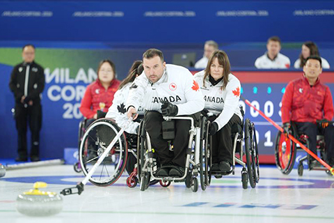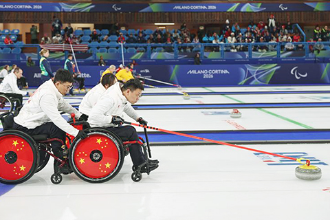 輪椅冰壺賽場,中國隊混雙組合王蒙/楊金橋對陣美國的德懷爾/埃姆特。中國隊開局慢熱,前三局以0:4落後,但第四局抓住後手機會一舉拿下4分。接下來兩局中國隊將比分反超為6:4,但美國隊最後兩局收穫3分,最終7:6勝出。