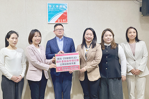 該會一行數人昨日二時半赴當局遞交意見書,副局長陳俊宇代表接收。她們稱,婦聯多年來持續推動完善生育友好型社會的相關法律與措施,樂見本次修法諮詢提出將有薪產假調升至九十日及調整年假等方向,以回應保障女性勞動權益、減輕中小微企成本負擔及支持家庭發展的現實需求。