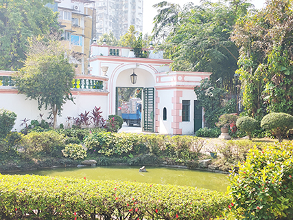 前面的花園草地無分歲月,安靜地伴着古老雕刻的石頭,這裡絕對安靜幽美。一棟圍牆分隔熱鬧與異常寧靜,在公園那邊放了很多健身運動設施,讓市民大眾邊做運動邊聊天,而在異常寧靜的別墅展覽館,仿如安寧的世界迎來珍貴的遊客,只有懶洋洋的保安把守大門。所以這裡必須要保持安靜,便可以拍照和參觀,一牆之隔竟是兩個世界,這裡可以靜心欣賞水池的錦鯉,可以憑弔銅像土生葡人商人先拿•飛南第,可以安靜地欣賞展出的藝術作品……◇
