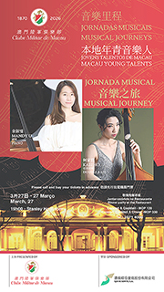對編製及實施澳門特區「三五」規劃 岑浩輝提出三大要求 澳教育界「兩會」精神傳達會逾八百人出席 為區域一體化發展育適配人才 有華東企業擬與澳高校合作推科企成果 科技基金率團訪南京科企 街總發佈四本社會服務領域新書 推動澳社服專業化發展 由十九家銀行提供合共百九十個職缺即日起報名 銀行職業配對會下周四揭幕 勞局與澳大持修中心合辦以提升建築工地安全 「安全主任培訓課程」報名 氹濠景花園一裝修中單位疑氣體洩漏爆炸 一裝修工燒傷卅名住客疏散 氹濠景花園受火警影響住戶 社工局提供支援 廣交會澳門春茗招待會舉行 增進與澳工商聯繫與深化合作 去年巴士全年載客量 達二點三一億人次創新高 「音樂之旅」下周五演出 郵電局頒發三活動獎項 七人車疑越線超速爬頭後入彎失控 撼另一七人車及巴士傷四人 十人晉升首席消防員 交局明後日進行系統維護 「一戶通」工作坊推電子政務 再有六停車場經營公開競投 招標期至四月廿二日 市署禁美國疫區禽肉入澳 食衛督導課程接受報名 上月查獲50名黑工 就主動對接國家「十五五」規劃 科委會委員提出多項建議 中華文化與金融變遷徵文比賽 澳大學生包攬冠亞軍 鄭成業:吸煙率下降趨緩、新興煙草產品再度流行 近年控煙工作面對新挑戰 橫琴口岸粵澳聯合一站式車道啟用兩載反覆運算升級 驗放車輛同比增近九成 設人氣隊伍投選活動及攝影比賽 「大巡遊」下周日舉行 澳門理工大學持續教育中心 今年第二季課程正接受報名 全民閱讀活動周「好書交換」 即日起收書至4月12日 澳區贛政協參與「兩會」精神傳達會 展出逾四百件展品休企辦澳炮竹業展覽 建築業「六會」邀人代及全國政協 分享「兩會」精神 「音樂之旅」下周五演出 2026-03-19 03:30:00 【特訊】澳門陸軍俱樂部活動「音樂里程-本地年青音樂人」將於三月二十七日,星期五,下午七時在何鴻燊博士廳舉行。 音樂會主題為「音樂之旅」,演出者為余淑雯(鋼琴)及何家碧(低音提琴)。 音樂會的觀眾上限為六十人。 音樂會結束後,賓客可參加為此音樂會特設的晚宴,訂座上限為五十人。 訂座或購票詳情,可致電二八七一.四000。◇