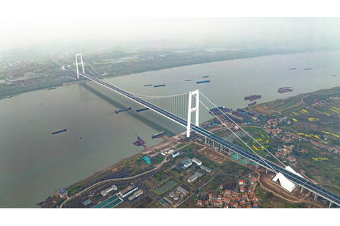 全球首座智慧懸索橋——雙柳長江大橋通車試運營 多地举办「世界水日」「中國水周」主题宣传活动 第二艘國產大型郵輪出塢 森林面積連續40年增長 圓明園獸首銅像洛陽展出 台南大天后宮訪廈門 道路運輸從業者年齡上限內地放寬至63歲 全球首座智慧懸索橋——雙柳長江大橋通車試運營 2026-03-21 03:31:00 ◎ 三月二十日拍攝的雙柳長江大橋(無人機照片)。當日,由湖北交通投資集團投資建設,中鐵大橋局等單位參與施工的雙柳長江大橋正式通車。據了解,雙柳長江大橋是武漢都市圈環線高速公路跨越長江的控制性工程,主橋主跨一千四百三十米,採用雙向八車道,設計時速一百二十公里。(新華社記者 蕭藝九 攝)