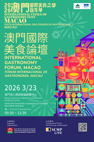 【特訊】旅遊局主辦的「2026澳門國際美食之都嘉年華」現正熱鬧舉行,當中亮點活動「澳門國際美食論壇」(簡稱「論壇」)將於本周一(23日)假澳門漁人碼頭會議展覽中心舉行。聯合國教科文組織創意城市網絡代表、聯合國糧農組織代表、國際頂尖內容創作者、餐飲業及學術代表等將分享真知灼見,並有近50個創意城市網絡美食範疇及其他範疇成員城市的代表、專家學者、澳門旅遊業及餐飲業界等將出席論壇,促進「美食之都」傳承、創新及交流,引發跨領域的創意新力量,彰顯澳門的國際交流合作平台優勢。