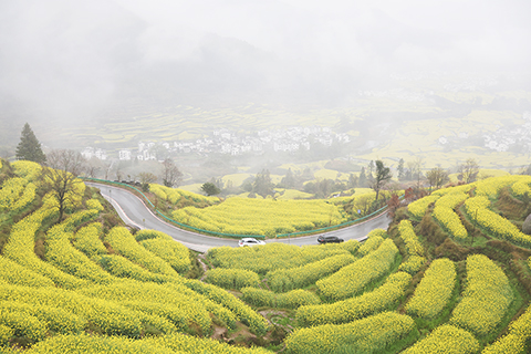 江西婺源十餘萬畝油菜花盛開 2026-03-25 03:30:00 ◎ 三月二十四日,江西省婺源縣江嶺景區,車輛行駛在油菜花梯田間的道路上。眼下,婺源縣十餘萬畝油菜花盛開,進入最佳觀賞期。(中新社記者 劉佔昆 攝)
