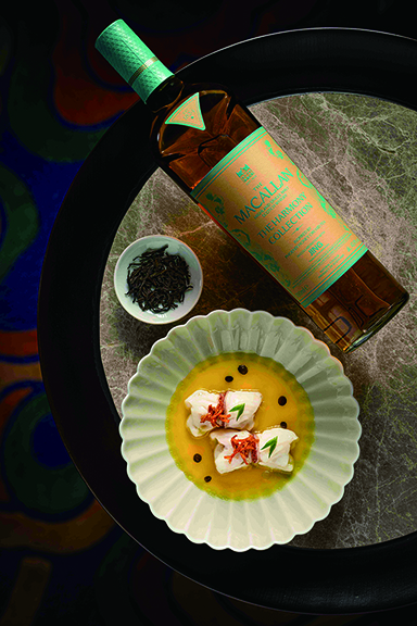 澳門美高梅中餐行政總廚及「金殿堂」主理人徐偉豪將麥卡倫全新「臻味不凡系列.鳳凰茶語」威士忌入饌,以四道佳餚呈現一場嶺南風味與西方釀藝交織的多重感官盛宴。