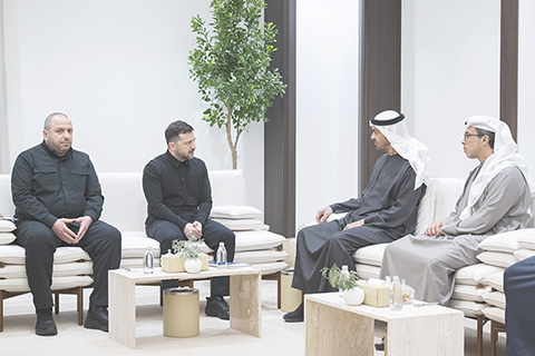 「華人神探」李昌鈺去世 終年87歲 阿聯酋總統與澤連斯基會晤討論安全局勢 第21批援乍得中國醫療隊在當地開展義診 中國專家助力布隆迪水稻增產 對以軍襲殺記者 黎總統強烈譴責 美「福特」號航母 駛入克羅地亞港口 卡塔爾與烏克蘭簽署防務合作協議 希臘克里特島附近海域 移民船事故致22死 「90後」說唱歌手 如何成為尼泊爾新總理? 巴伊領導人通話一小時 冀找到途徑結束戰事 伊朗稱摧毀迪拜的烏克蘭反無人機武器庫 萬斯批評內塔尼亞胡對衝突預判「太樂觀」 特朗普威脅「下一個是古巴」 就《不擴散核武器條約》 伊朗官員稱考慮退出 以媒稱也門胡塞武裝「參戰」 涉參與鎮壓示威者行動 尼泊爾前總理奧利被逮捕 泰國伊朗達成協議 泰油輪可通行霍爾木茲海峽 俄羅斯四月一日起禁止汽油出口 阿聯酋總統與澤連斯基會晤討論安全局勢 2026-03-29 03:30:00 ◎ 三月二十八日,阿聯酋總統穆罕默德(右二)在阿布扎比會見到訪的烏克蘭總統澤連斯基(左二)。(新華社/阿通社)