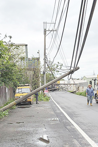 ◎ 四月一日,台灣桃園市楊梅區新榮路發生一起大型車輛勾扯電線事故,導致整排電線桿倒塌。經初步了解,一輛大貨車準備返回停車場停放時,疑因未注意車輛高度與周遭環境,車上吊臂不慎勾到下垂電線,進而拉扯造成連鎖反應,導致約九根電線桿接連斷裂倒塌,現場一度交通受阻,所幸事故未造成人員傷亡,警方已排除司機酒駕情形。(香港中通社圖片)
