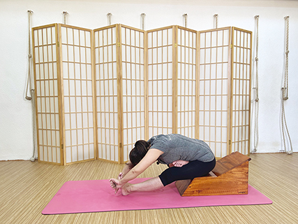 此體式是坐式系列中比較常見的體式,除了可以加強背部的伸展,亦可增加雙腿的力量及柔軟度。練習艾揚格瑜伽體系,當中的部份體式除了可以運用日常生活中較容易找到的輔具,例如毛毯、厚墊等用來進行支撐外,亦可以在進行時令身體感覺到每個部位所使用的力量,從而達至活化內臟及放鬆身體,以思考和觀察再修正的方式學習。◇