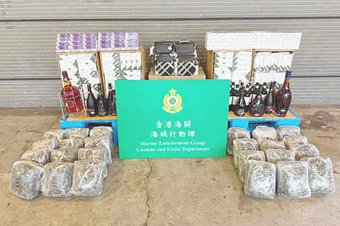 ◎ 四月三日,香港海關公佈於四月一日偵破一宗涉嫌利用內河船走私的案件,並檢獲大批懷疑走私貨物,估計市值共約七十萬元。圖示檢獲的懷疑走私貨物。(香港中通社圖片)