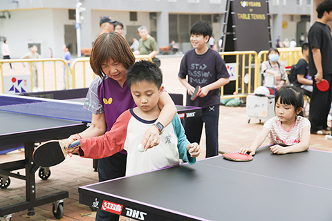 為進一步將乒乓球運動融入社區,除慶祝儀式外,主辦單位於4月3日至5日期間,每日早上9時至下午6時在祐漢街市公園及青洲坊蓮花廣場設置乒乓球?(4月4日祐漢街市公園至下午3時),供市民免費使用,並安排教練在場指導基本技巧,而祐漢街市公園現場同時設有球賽直播,鼓勵市民踴躍參與,讓乒乓球運動成為日常生活的一部分。◇