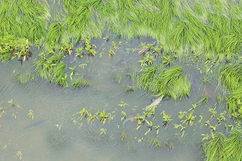 江西鄱陽湖:水漲草茂濕地如畫 2026-04-10 03:30:00 ◎ 四月九日,江西鄱陽湖都昌水域,鷺鳥或棲息在草洲,或飛翔于湖面。連日來,中國最大淡水湖鄱陽湖水位上漲,連片濕地草洲茂密葱鬱。湖區良好的自然環境,為候鳥和魚類提供了適宜的棲息繁殖空間。(無人機照片)(中新社記者 劉佔昆 攝)