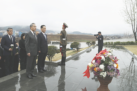 金正恩會見王毅 緬甸新總統敏昂萊宣誓就職 王毅祭掃江東郡中國人民志願軍烈士陵園 中方投資的柬埔寨首座千兆瓦級抽水蓄能電站開工 伊朗前外長哈拉齊傷重不治 伊朗最高領袖提出三點主張 包括賠償損失和海峽新規 普京宣佈東正教復活節暫時停火 烏方表示跟進 對霍爾木茲海峽通行費 特朗普警告伊朗不要收取 沙特阿聯酋科威特近日多次遭襲 伊朗否認襲擊 伊朗最高領袖 俄總統代表正在訪美 對日本「降級」中日關係 中方:根源在高市涉台謬論 美國第一夫人:愛潑斯坦沒有把我介紹給特朗普 美伊談判舉行在即 巴方做好嚴密安保 特朗普向歐洲下「最後通牒」 拿出對霍爾木茲海峽軍事計劃 韓國抗議日本《外交藍皮書》 有關對獨島的主張 新一批「愛國者」導彈 烏克蘭已開始接收 王毅祭掃江東郡中國人民志願軍烈士陵園 2026-04-11 03:30:00 ◎ 四月十日,正在朝鮮訪問的中共中央政治局委員、外交部長王毅專程前往平壤東部江東郡祭掃中國人民志願軍烈士陵園,深切緬懷犧牲在朝鮮大地的中國人民志願軍英烈。(新華社記者 王超 攝)