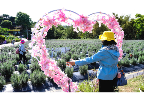 苗栗縣葛瑞絲香草田 2026-04-12 03:31:00 台灣苗栗縣葛瑞絲香草田這裡種了兩萬株薰衣草、和兩千多棵澳洲茶樹,設有農場栽種的薰衣草所提煉出的精油與精油相關產品,這裡種植的薰衣草,以齒葉薰衣草為主,是要是可提煉精油的齒葉薰衣草,不僅擁有浪漫的紫色花海,更在花季時開放讓遊客免費漫步參觀,體驗如同南法般普羅旺斯般的浪漫芬圍,成為苗栗熱門的「療癒系」景點。(香港中通社圖片)