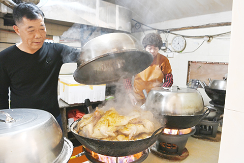 「在漳州『無雞不成宴』,希望海內外遊子多回鄉看看,品嚐家鄉這道原汁原味的鹽雞。」蔡建民說。◇(中新社)