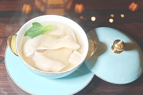 作為福州傳統宴席上的「壓軸菜」,雞湯汆海蚌素有閩菜「皇后」之稱。20世紀80年代初,經閩菜大師強木根、強曲曲改良,這道湯菜多次亮相國宴接待外賓,聲名遠揚。2022年,雞湯汆海蚌製作技藝入選福建省第七批省級非物質文化遺產代表性項目名錄。