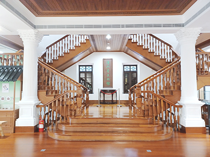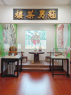 澳門茶文化館佈置成中式茶樓風格,配襯着貴氣的酸枝家具,館內最矚目的是對稱亮麗的樓梯,自豪的踏上這線條優美梯級去感受樓梯的氣勢也是一種享受。從對稱的樓梯步上二樓的矚目地帶,橫樑上掛上「瓊枝玉液」的牌匾,靠窗處是茶文化教育角開辦茶藝班,桌上擺放着六十個珍貴茶壺,有品種造型不同的紫砂茶壺,漆器茶壺和陶瓷茶壺等。在冠男茶樓專區內展出價值連城的巨型的普洱茶王,飽覽昔日茶樓的歷史藏品和票券,回味昔日的請帖和茶樓廣告,時光迴轉到六十年代的青蔥歲月!